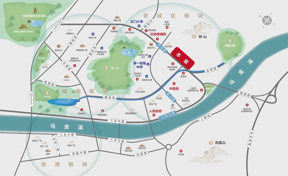 茂新·鐘山云樾項(xiàng)目立于鐘山南麓,北臨龍?zhí)稙彻珗@,東攬芹江盛境,鐘秀廣場(chǎng)、金溪畫(huà)廊在側(cè),環(huán)境資源優(yōu)越。